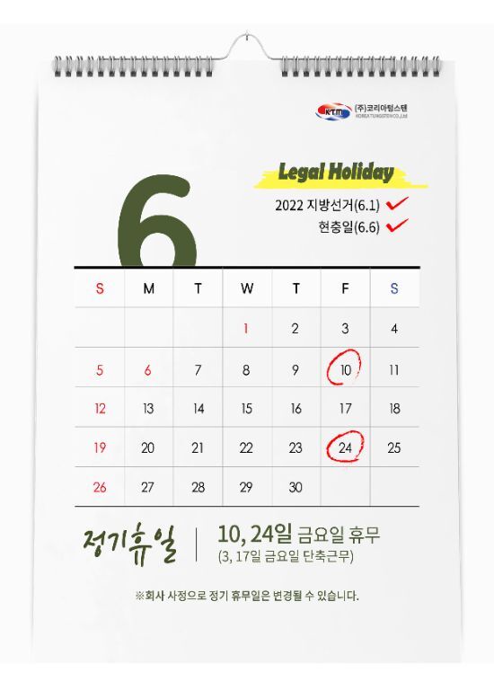 코리아텅스텐 2022년 6월 정기휴무 안내