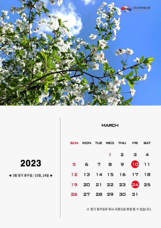 코리아텅스텐 2023년 3월 정기휴무 안내