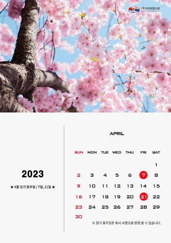 코리아텅스텐 2023년 4월 정기휴무 안내