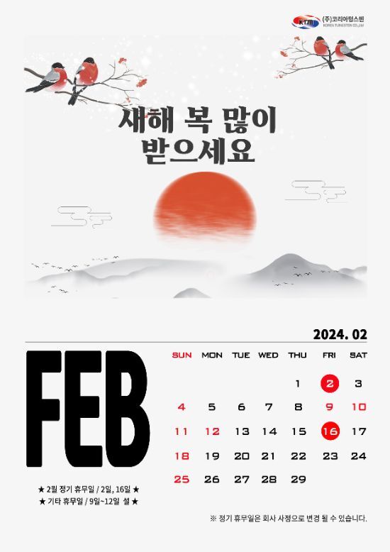 코리아텅스텐 2024년 2월 정기휴무 안내
