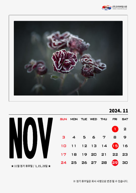 11월 코리아텅스텐 정기 휴무일 안내드립니다.