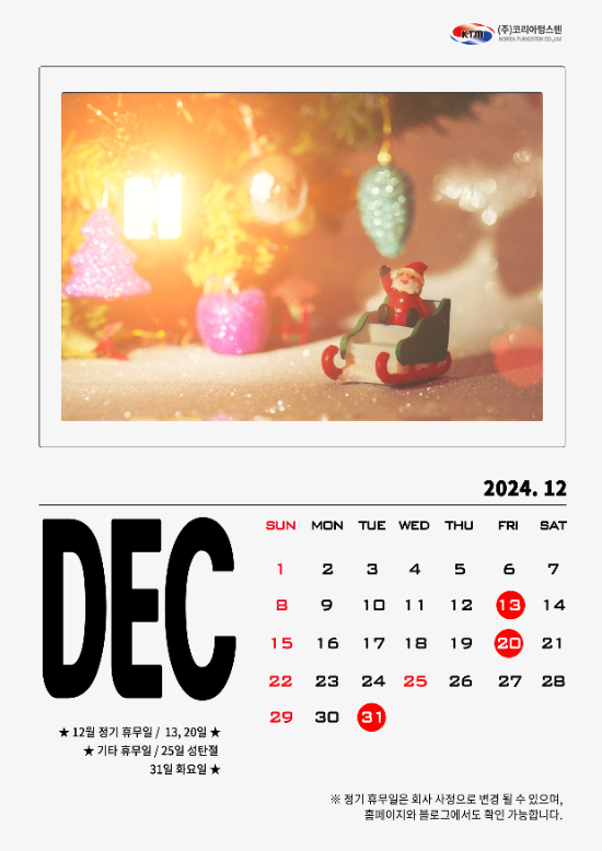 12월 코리아텅스텐 정기 휴무일 안내 드립니다.