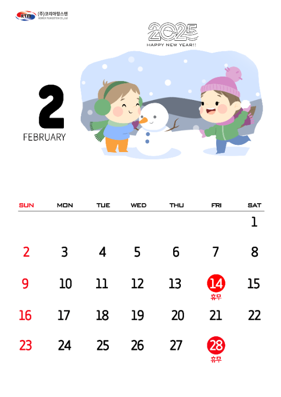 코리아텅스텐 2025년 2월 휴무 안내