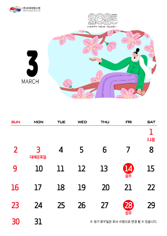 코리아텅스텐 2025년 3월 휴무 안내