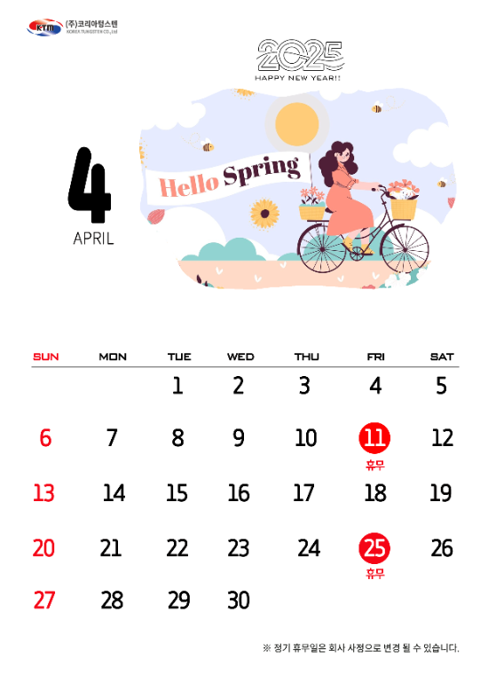 4월 코리아텅스텐 휴무일 안내 드립니다.