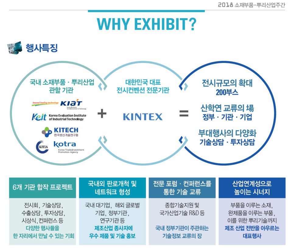 텅스텐가공, 제조 1세대 기업 코리아텅스텐이 일산 킨텍스에서 개최된 '2018 소재부품 뿌리산업주간' 전시회에 참가하게 되었습니다. '2018 소재부품 뿌리산업주간' 은 일산 킨텍스 제 1전시장 5홀에서 2018. 10.23(화)~25(목) 진행되었는데요, 대한민국 산업 경쟁력의 근간을 이루는 소재 및 부품, 뿌리기술 고나련 기업을 소개하고, 판로 개척을 위한 비즈니스 상담에서 국내 제조업 현황과 미래 트렌드까지 확인할 수 있는 기술전시회랍니다. 이번 행사는 산업통상자원부가 주최하고, 한국산업기술진흥원과 한국생산기술연구원, 한국산업기술평가관리원, 코트라, 한국소재부품투자기관협의회, 킨텍스가 공동 주관하며, 장은공익재단이 후원했습니다.